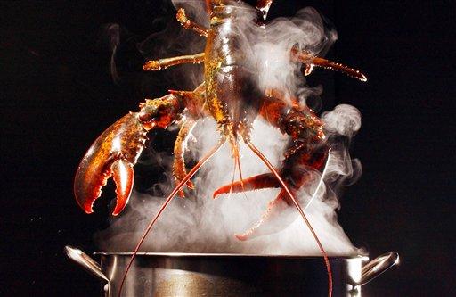 PORTLAND, Maine - A new study out of Norway concludes it's unlikely lobsters feel pain, stirring up a long-simmering debate over whether Maine's most valuable seafood suffers when it's being cooked. Animal activists for years have claimed that lobsters are in agony when being cooked, and that dropping one in a pot of boiling water is tantamount to torture. The study, funded by the Norwegian government and written by a scientist at the University of Oslo, suggests lobsters and other invertebrates such as crabs, snails and worms probably don't suffer even if lobsters do tend to thrash in boiling water.